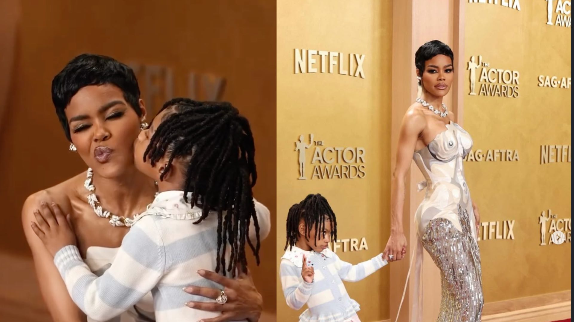 On the red carpet of the 2026 SAG Awards, spectacular looks abound each year. This time, it was the appearance of American singer-songwriter, actress, and director Teyana Taylor with her daughter that particularly stood out.