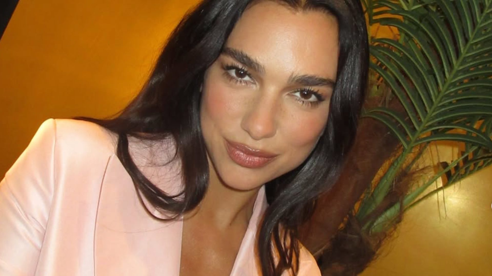 En una serie de fotos compartidas en su cuenta de Instagram, Dua Lipa luce un blazer rosa pálido de Gucci con solapas puntiagudas y acabado brillante, abotonado a la cintura, que deja ver un bralette negro debajo. El conjunto se completa con pantalones negros de talle alto, varios anillos de oro, incluyendo uno con forma de serpiente y su anillo de compromiso, además de un bolso de hombro de piel negra suave. Una forma original de romper con el estilo profesional.