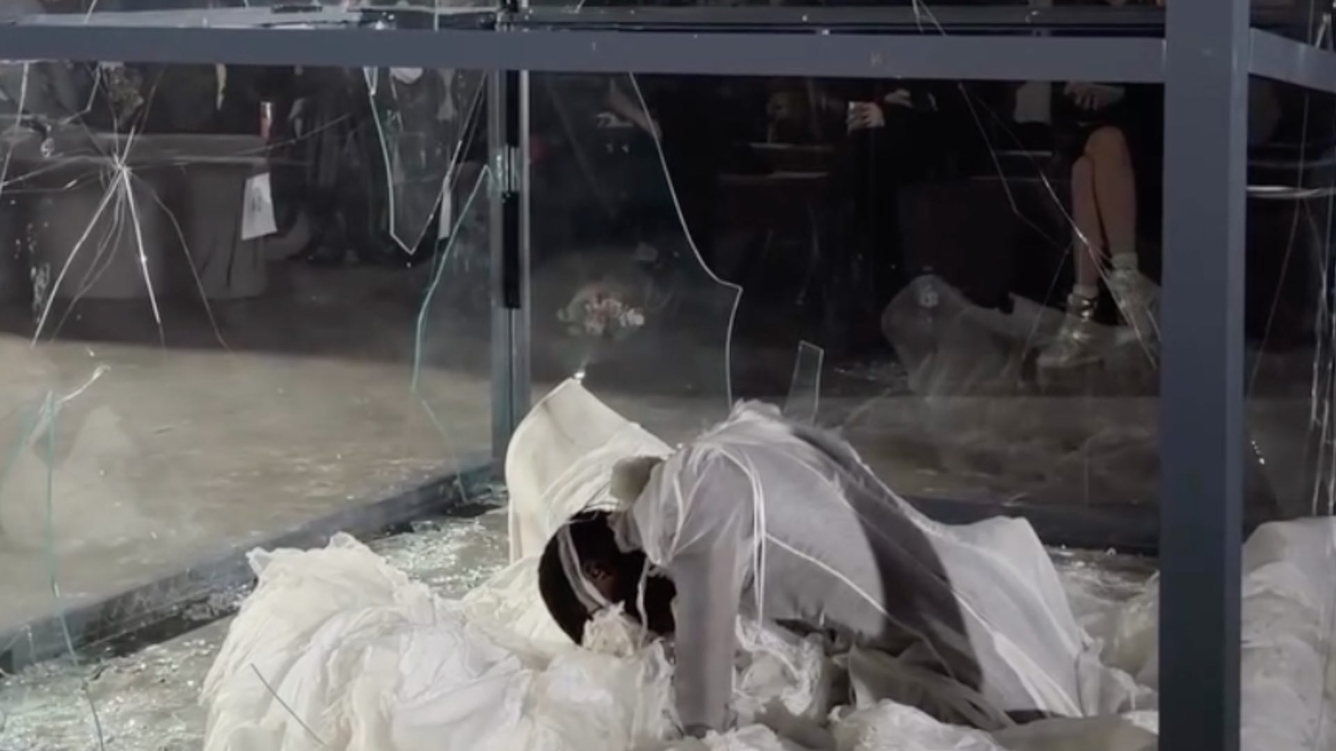 Esitys päättyi silmiinpistävään kohtaukseen: valkoisiin pukeutunut malli, joka oli suljettu rakenteeseen, rikkoi lasiseinän vasaralla. Särkyvän lasin ääni säikäytti yleisön. Muutaman tunnin kuluessa finaaliesityksen kuvamateriaali levisi laajalti X:ssä (entinen Twitter), Instagramissa ja TikTokissa, nostaen Erica Myatin esityksen viikon viraalimpien hetkien joukkoon.