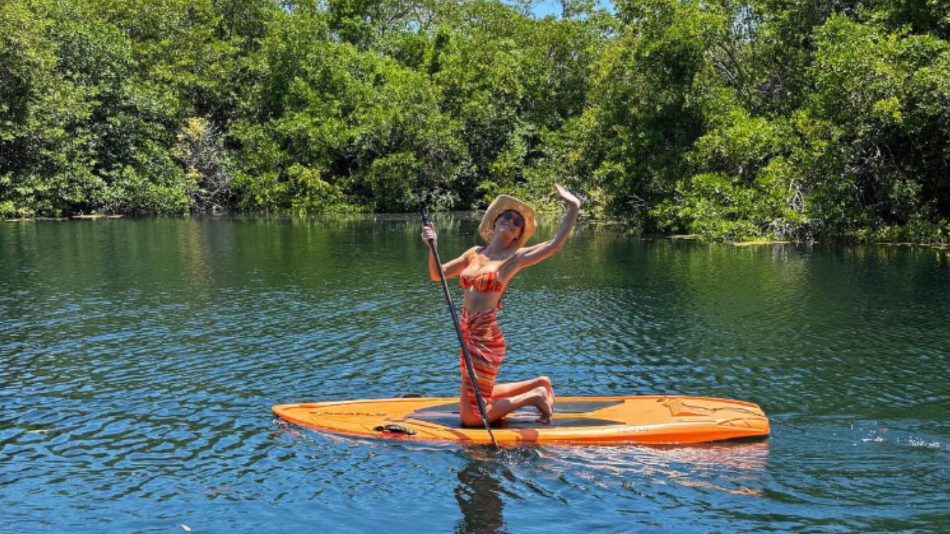 Lors de son séjour à l’hôtel Esencia, un cinq étoiles situé au Mexique, Brie Larson a profité du soleil et des eaux calmes pour se détendre. Vêtue d’un deux pièces orange à rayures, elle a été photographiée en train de faire du paddle et de profiter des moments simples, le sourire éclatant aux lèvres.