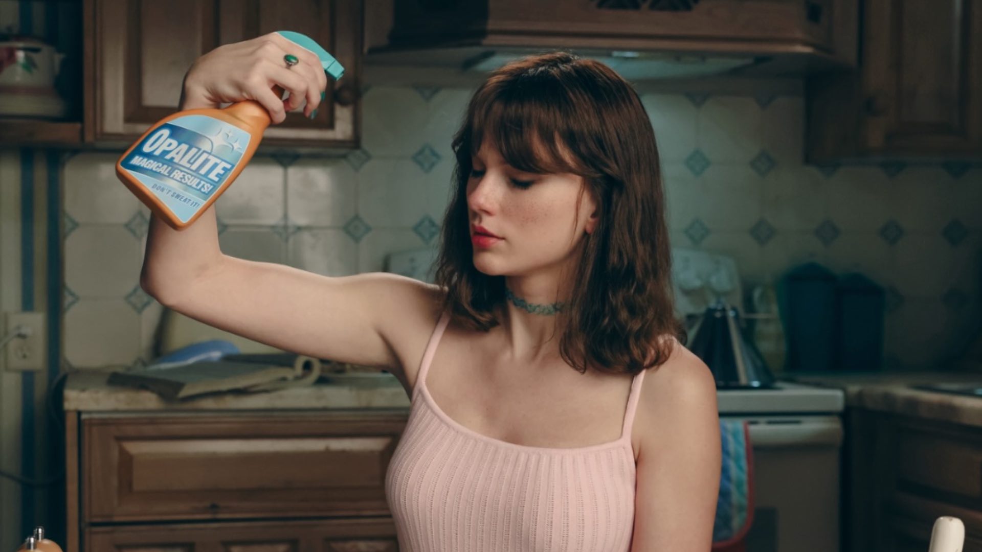 Le brun profond du coiffage de Taylor Swift rappelle les coiffures emblématiques des teen movies et des icônes pop de la fin du XXᵉ siècle. Associé à des tenues vintage – des tracksuits scintillants aux accessoires d’époque – cette transformation capillaire aide à ancrer visuellement le récit du clip dans une esthétique rétro authentique.